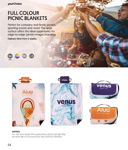 Full colour Picnic blanket. 100% polyester fleece (220gsm) with black 80gr
