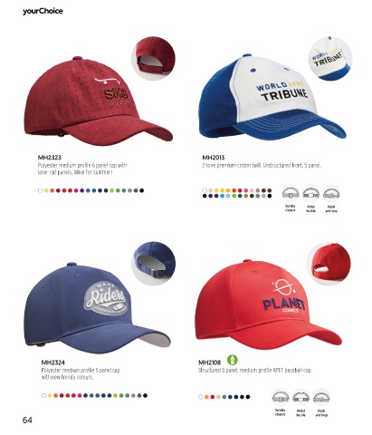 Polyester medium profile 6 panel cap with 2 tone premium cotton twill. Unstructured front. 5 panel.