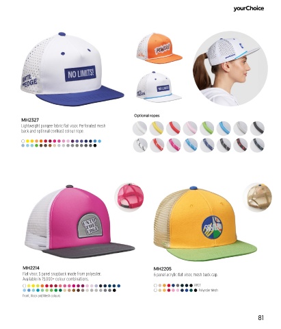 Flat visor, 5 panel snapback made from polyester. 6 panel acrylic flat visor, mesh back cap.