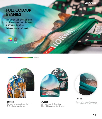 Full colour double layer beanie 190gsm, Full colour beanie with fleece lining also suitable for colder weather.