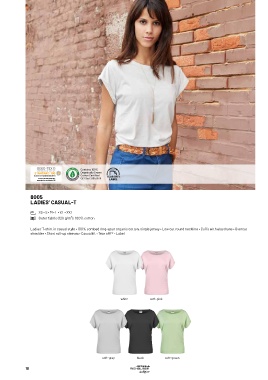 Ladies’ T-shirt in casual style • 100% combed ring-spun organic cotton, single jersey • Low cut round neckline • Cuffs with elasthane • Overcut