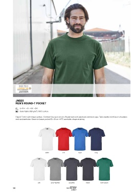 Classic T-shirt with breast pocket • Combed ring-spun cotton • Round neck with elasthane and neck tape • Twin-needle stitching on shoulders,