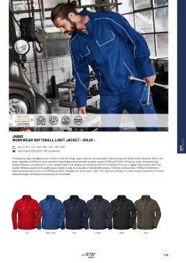 water-repellent (2,000 mm water column) • Breathable and permeable to water vapour (2,000 g/m²/24h) • Stand-up collar • Ergonomically