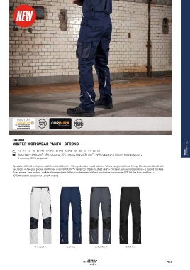 Specialized, lined work pants with functional details • Sturdy, durable mixed fabrics • Warm, roughened inner lining • Elastic waistband with