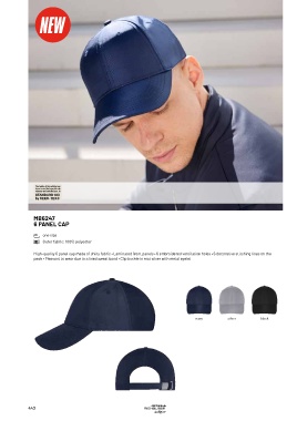 High-quality 6 panel cap made of shiny fabric • Laminated front panels • 6 embroidered ventilation holes • 6 decorative stitching lines on the