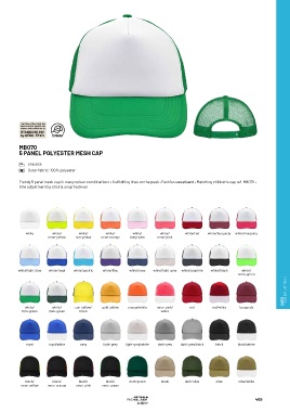 Trendy 5 panel mesh cap in many colour combinations • 6 stitching lines on the peak • Fashion sweatband • Matching children’s cap ref. MB071 •
