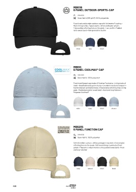 Functional 6 panel cap made of Coolmax® extreme • Lining made of