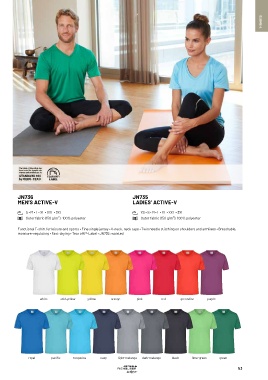 Functional T-shirt for leisure and sports • Fine single jersey • V-neck, neck tape • Twin needle stitching on shoulders and armlines • Breathable,