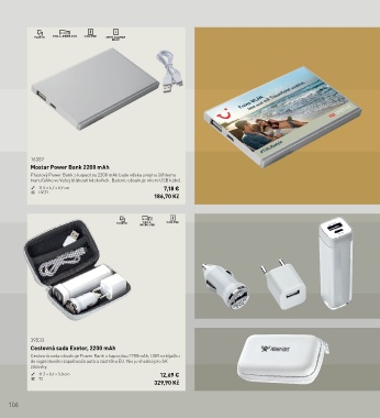 Cestovná sada obsahuje Power Bank s kapacitou 2200mAh, USB nabíjačku