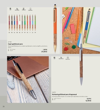 Korkové guľôčkové pero so striebornými doplnkami a modrou tuhou.