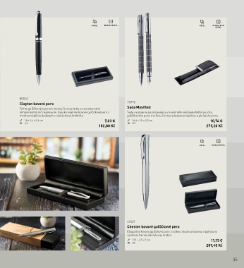 modrou náplňou dodávame v darčekovej krabičke. guľôčkového pera s veľkou čiernou plastovou náplňou a plniaceho pera.