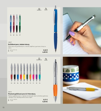 Tenké plastové guľôčkové pero s modrou náplňou a gumovou úchopnou