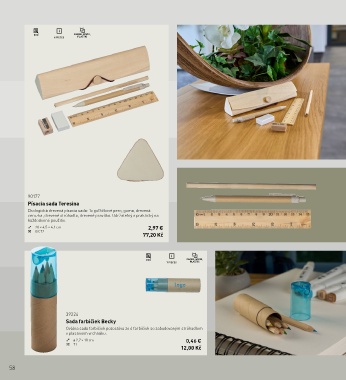 ceruzka, drevené strúhadlo, drevené pravítko. Udržateľný a praktický na