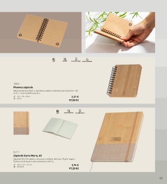 Malý poznámkový blok so špirálovou väzbou a bambusovým puzdrom. 160