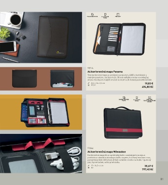 poznámkový blok (30 listov), držiak na tablet, vrecko na mobil, 1 gumený