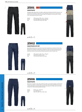 Waistpants in durable cotton. Side pockets, the right one with internal safety pocket with zip 58