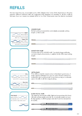 segment, different standard refills are suggested. Refill upgrades are possible for all pens made in