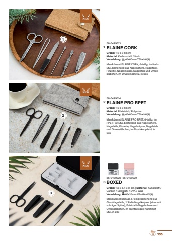 NEWNEWNEW56-0499013ELAINE CORKGr%u00f6%u00dfe:%u00a011 x 6 x 1,8 cmMaterial: Karbonstahl / KorkVeredelung: %u00a040x60mm T50+H6(4)Manik%u00fcreset ELAINE CORK, 6-teilig: im KorkEtui, bestehend aus Nagelschere, Nagelfeile, Pinzette, Nagelknipser, Nagelstab und Ohrenst%u00e4bchen, im Druckknopfetui, in Box56-0499014ELAINE PRO RPETGr%u00f6%u00dfe:%u00a011 x 6 x 1,8 cmMaterial: Edelstahl / PolyesterVeredelung: %u00a040x60mm T50+H6(4)Manik%u00fcreset ELAINE PRO RPET, 6-teilig: im RPET Filz-Etui, bestehend aus Nagelschere, Nagelfeile, Pinzette, Nagelknipser, Nagelstab und Ohrenst%u00e4bchen, im Druckknopfetui, in Box56-0499023BOXEDGr%u00f6%u00dfe:%u00a011,8 x 6,7 x 2,1 cm | Material: Kunststoff / Carbon / Edelstahl / EVA / GlasVeredelung: %u00a060x20mm K2+H4+V1(4)Manik%u00fcreset BOXED, 5-teilig: bestehend aus Glas-Nagelfeile, 2 Stahl-Nagelknipser (einer mit schr%u00e4ger Spitze), Edelstahl-Nagelschere und Ohrenst%u00e4bchen, im rechteckigen KunststoffEtui, in Box56-0499024135123213