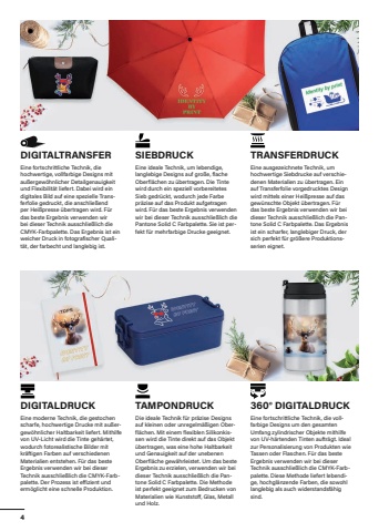 DIGITALTRANSFEREine fortschrittliche Technik, die hochwertige, vollfarbige Designs mit au%u00dfergew%u00f6hnlicher Detailgenauigkeit und Flexibilit%u00e4t liefert. Dabei wird ein digitales Bild auf eine spezielle Transferfolie gedruckt, die anschlie%u00dfend per Hei%u00dfpresse %u00fcbertragen wird. F%u00fcr das beste Ergebnis verwenden wir bei dieser Technik ausschlie%u00dflich die CMYK-Farbpalette. Das Ergebnis ist ein weicher Druck in fotografischer Qualit%u00e4t, der farbecht und langlebig ist.DIGITALDRUCKEine moderne Technik, die gestochen scharfe, hochwertige Drucke mit au%u00dfergew%u00f6hnlicher Haltbarkeit liefert. Mithilfe von UV-Licht wird die Tinte geh%u00e4rtet, wodurch fotorealistische Bilder mit kr%u00e4ftigen Farben auf verschiedenen Materialien entstehen. F%u00fcr das beste Ergebnis verwenden wir bei dieser Technik ausschlie%u00dflich die CMYK-Farbpalette. Der Prozess ist effizient und erm%u00f6glicht eine schnelle Produktion.TAMPONDRUCKDie ideale Technik f%u00fcr pr%u00e4zise Designs auf kleinen oder unregelm%u00e4%u00dfigen Oberfl%u00e4chen. Mit einem flexiblen Silikonkissen wird die Tinte direkt auf das Objekt %u00fcbertragen, was eine hohe Haltbarkeit und Genauigkeit auf der unebenen Oberfl%u00e4che gew%u00e4hrleistet. Um das beste Ergebnis zu erzielen, verwenden wir bei dieser Technik ausschlie%u00dflich die Pantone Solid C Farbpalette. Die Methode ist perfekt geeignet zum Bedrucken von Materialien wie Kunststoff, Glas, Metall und Holz.360%u00b0 DIGITALDRUCKEine fortschrittliche Technik, die vollfarbige Designs um den gesamten Umfang zylindrischer Objekte mithilfe von UV-h%u00e4rtenden Tinten auftr%u00e4gt. Ideal zur Personalisierung von Produkten wie Tassen oder Flaschen. F%u00fcr das beste Ergebnis verwenden wir bei dieser Technik ausschlie%u00dflich die CMYK-Farbpalette. Diese Methode liefert lebendige, hochgl%u00e4nzende Farben, die sowohl langlebig als auch widerstandsf%u00e4hig sind.SIEBDRUCKEine ideale Technik, um lebendige, langlebige Designs auf gro%u00dfe, flache Oberfl%u00e4chen zu %u00fcbertragen. Die Tinte wird durch ein speziell vorbereitetes Sieb gedr%u00fcckt, wodurch jede Farbe pr%u00e4zise auf das Produkt aufgetragen wird. F%u00fcr das beste Ergebnis verwenden wir bei dieser Technik ausschlie%u00dflich die Pantone Solid C Farbpalette. Sie ist perfekt f%u00fcr mehrfarbige Drucke geeignet.TRANSFERDRUCKEine ausgezeichnete Technik, um hochwertige Siebdrucke auf verschiedenen Materialien zu %u00fcbertragen. Ein auf Transferfolie vorgedrucktes Design wird mittels einer Hei%u00dfpresse auf das gew%u00fcnschte Objekt %u00fcbertragen. F%u00fcr das beste Ergebnis verwenden wir bei dieser Technik ausschlie%u00dflich die Pantone Solid C Farbpalette. Das Ergebnis ist ein scharfer, langlebiger Druck, der sich perfekt f%u00fcr gr%u00f6%u00dfere Produktionsserien eignet.4