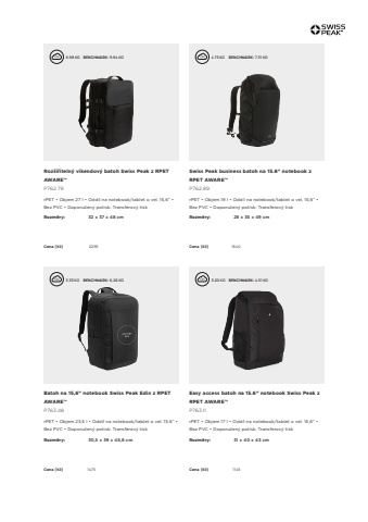 111Roz%u0161i%u0159iteln%u00fd v%u00edkendov%u00fd batoh Swiss Peak z RPET AWARE%u2122P762.79rPET %u2022 Objem 27 l %u2022 Odd%u00edl na notebook/tablet o vel. 15,6%u201d %u2022 Bez PVC %u2022 Doporu%u010den%u00fd potisk: Transferov%u00fd tiskRozm%u011bry: 32 x 37 x 48 cmCena (K%u010d) 2295 6.98 KG %u0009 BENCHMARK: 9.94 KGSwiss Peak business batoh na 15.6%u201d notebook z RPET AWARE%u2122P762.89rPET %u2022 Objem 19 l %u2022 Odd%u00edl na notebook/tablet o vel. 15,6%u201d %u2022 Bez PVC %u2022 Doporu%u010den%u00fd potisk: Transferov%u00fd tiskRozm%u011bry: 28 x 35 x 49 cmCena (K%u010d) 1640 4.75 KG %u0009 BENCHMARK: 7.31 KGBatoh na 15,6%u201d notebook Swiss Peak Edin z RPET AWARE%u2122P763.48rPET %u2022 Objem 23,5 l %u2022 Odd%u00edl na notebook/tablet o vel. 15,6%u201d %u2022 Bez PVC %u2022 Doporu%u010den%u00fd potisk: Transferov%u00fd tiskRozm%u011bry: 30,5 x 39 x 45,8 cmCena (K%u010d) 1475 3.33 KG %u0009 BENCHMARK: 6.26 KGEasy access batoh na 15.6%u201d notebook Swiss Peak z RPET AWARE%u2122P763.11rPET %u2022 Objem 17 l %u2022 Odd%u00edl na notebook/tablet o vel. 15,6%u201d %u2022 Bez PVC %u2022 Doporu%u010den%u00fd potisk: Transferov%u00fd tiskRozm%u011bry: 31 x 40 x 43 cmCena (K%u010d) 1145 3.20 KG %u0009 BENCHMARK: 4.51 KG