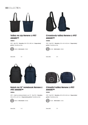 128your logo hereCrossbody ta%u0161ka Renew z rPET AWARE%u2122100805rPET %u2022 Bez PVC %u2022 Rozm%u011bry: 21,6 x 40 x 40,6 cm %u2022 Doporu%u010den%u00fdpotisk: Transferov%u00fd tisk0.91 KG %u0009 BENCHMARK: 1.59 KGCena (K%u010d) 325 Chlad%u00edc%u00ed ta%u0161ka Renew z rPET AWARE%u2122101032rPET %u2022 Bez PVC %u2022 Rozm%u011bry: 22,9 x 30 x 22,2 cm %u2022 Doporu%u010den%u00fdpotisk: Transferov%u00fd tisk1.04 KG %u0009 BENCHMARK: 1.74 KGCena (K%u010d) 375 Batoh na 15%u201d notebook Renew z rPET AWARE%u2122100806rPET %u2022 Odd%u00edl na notebook/tablet o vel. 15%u201d %u2022 Bez PVC %u2022 Rozm%u011bry:29,2 x 37,5 x 45,7 cm %u2022 Doporu%u010den%u00fd potisk: Transferov%u00fd tisk2.80 KG %u0009 BENCHMARK: 5.35 KGCena (K%u010d) 1145 Ta%u0161ka na zip Renew z rPET AWARE%u2122100804rPET %u2022 Bez PVC %u2022 Rozm%u011bry: 28 x 37,5 x 38,1 cm %u2022 Doporu%u010den%u00fdpotisk: Transferov%u00fd tisk0.89 KG %u0009 BENCHMARK: 1.78 KGCena (K%u010d) 261