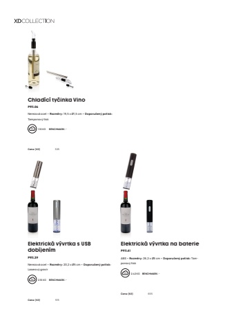 142Elektrick%u00e1 v%u00fdvrtka s USB dob%u00edjen%u00edmP911.39Nerezov%u00e1 ocel %u2022 Rozm%u011bry: 20,2 x %u00d85 cm %u2022 Doporu%u010den%u00fd potisk:Laserov%u00fd grav%u00edr2.16 KG %u0009 BENCHMARK: -Cena (K%u010d) 915 Elektrick%u00e1 v%u00fdvrtka na baterieP911.41ABS %u2022 Rozm%u011bry: 26,2 x %u00d85 cm %u2022 Doporu%u010den%u00fd potisk: Tamponov%u00fd tisk2.42 KG %u0009 BENCHMARK: -Cena (K%u010d) 655 Chlad%u00edc%u00ed ty%u010dinka VinoP911.06Nerezov%u00e1 ocel %u2022 Rozm%u011bry: 19,5 x %u00d81,5 cm %u2022 Doporu%u010den%u00fd potisk:Tamponov%u00fd tisk1.10 KG %u0009 BENCHMARK: -Cena (K%u010d) 325