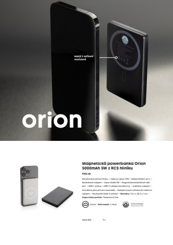 152your logo hereNab%u00edj%u00ed 2 za%u0159%u00edzen%u00ed sou%u010dasn%u011borionMagnetick%u00e1 powerbanka Orion 5000mAh 5W z RCS hlin%u00edkuP322.60Recyklovan%u00e1 slitina hlin%u00edku %u2022 Celkov%u00fd v%u00fdkon 10W %u2022 Nabije telefon a%u017e 1x %u2022 Bezdr%u00e1tov%u00e9 nab%u00edjen%u00ed %u2022 V%u00fdkon dra%u017e%u00e9 5W %u2022 Magnetick%u00e9 bezdr%u00e1tov%u00e9 nab%u00edjen%u00ed %u2022 USB C v%u00fdstup %u2022 USB-C nab%u00edjec%u00ed konektor(y) %u2022 Indik%u00e1tor nab%u00edjen%u00ed %u2022 Schv%u00e1leno jako p%u0159%u00edru%u010dn%u00ed zavazadlo %u2022 Nab%u00edjen%u00ed jin%u00fdch za%u0159%u00edzen%u00ed p%u0159i vlastn%u00edm nab%u00edjen%u00ed %u2022 Sou%u010dasn%u011b na%u010dte 2 za%u0159%u00edzen%u00ed %u2022 Rozm%u011bry: 10,4 x 26,3 x 1 cm %u2022 Doporu%u010den%u00fd potisk: Tamponov%u00fd tisk2.59 KG %u0009 BENCHMARK: 2.78 KG Pod%u00edl RCS recyklovan%u00e1 slitina hlin%u00edku: 23 %. CERTIFIKOV%u00c1NO KONTROLN%u00cd UNI%u00cd (CU 1162221)Cena (K%u010d) 750