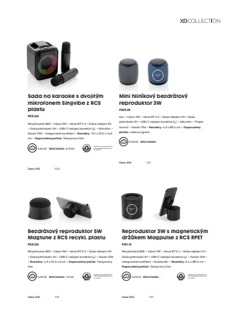 169your logo hereyour logo hereSada na karaoke s dvojit%u00fdm mikrofonem Singvibe z RCS plastuP331.06Recyklovan%u00e1 ABS %u2022 V%u00fdkon 5W %u2022 Verze BT 5.3 %u2022 Doba nab%u00edjen%u00ed 3H %u2022 Doba p%u0159ehr%u00e1v%u00e1n%u00ed 5H %u2022 USB-C nab%u00edjec%u00ed konektor(y) %u2022 Mikrofon %u2022 Dosah 10M %u2022 Integrovan%u00e9 osv%u011btlen%u00ed %u2022 Rozm%u011bry: 15,1 x 33,5 x 14,6 cm %u2022 Doporu%u010den%u00fd potisk: Tamponov%u00fd tisk6.84 KG %u0009 BENCHMARK: 8.75 KG Pod%u00edl RCS recyklovan%u00e1 ABS: 53 %. CERTIFIKOV%u00c1NO KONTROLN%u00cd UNI%u00cd (CU 1162221)Cena (K%u010d) 1640 Mini hlin%u00edkov%u00fd bezdr%u00e1tov%u00fd reproduktor 3WP329.39Kov %u2022 V%u00fdkon 3W %u2022 Verze BT 5.0 %u2022 Doba nab%u00edjen%u00ed 2H %u2022 Doba p%u0159ehr%u00e1v%u00e1n%u00ed 3H %u2022 USB-C nab%u00edjec%u00ed konektor(y) %u2022 Mikrofon %u2022 P%u0159%u00edjem hovor%u016f %u2022 Dosah 10M %u2022 Rozm%u011bry: 4,5 x %u00d83,4 cm %u2022 Doporu%u010den%u00fdpotisk: Laserov%u00fd grav%u00edr0.63 KG %u0009 BENCHMARK: -Cena (K%u010d) 425 Bezdr%u00e1tov%u00fd reproduktor 5W Magtune z RCS recykl. plastuP331.05Recyklovan%u00e1 ABS %u2022 V%u00fdkon 5W %u2022 Verze BT 5.0 %u2022 Doba nab%u00edjen%u00ed 2H %u2022 Doba p%u0159ehr%u00e1v%u00e1n%u00ed 4H %u2022 USB-C nab%u00edjec%u00ed konektor(y) %u2022 Dosah 10M %u2022 Rozm%u011bry: 4,3 x 23,5 x 6 cm %u2022 Doporu%u010den%u00fd potisk: Tamponov%u00fd tisk0.93 KG %u0009 BENCHMARK: 1.01 KG Pod%u00edl RCS recyklovan%u00e1 ABS: 22 %. CERTIFIKOV%u00c1NO KONTROLN%u00cd UNI%u00cd (CU 1162221)Cena (K%u010d) 655 Reproduktor 3W s magnetick%u00fdm dr%u017e%u00e1kem Magpulse z RCS RPETP311.13Recyklovan%u00e1 ABS %u2022 V%u00fdkon 3W %u2022 Verze BT 5.4 %u2022 Doba nab%u00edjen%u00ed 1H %u2022 Doba p%u0159ehr%u00e1v%u00e1n%u00ed 3H %u2022 USB-C nab%u00edjec%u00ed konektor(y) %u2022 Dosah 10M %u2022 Integrovan%u00e9 osv%u011btlen%u00ed %u2022 Subwoofer %u2022 Rozm%u011bry: 6,4 x %u00d86,5 cm %u2022 Doporu%u010den%u00fd potisk: Tamponov%u00fd tisk2.03 KG %u0009 BENCHMARK: - Pod%u00edl RCS recyklovan%u00e1 ABS: 35 %. CERTIFIKOV%u00c1NO KONTROLN%u00cd UNI%u00cd (CU 1162221)Cena (K%u010d) 555