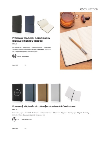 185your logo herePr%u00e9miov%u00fd modern%u00ed pozn%u00e1mkov%u00fd blok A5 s m%u011bkkou vazbouP774.22PU %u2022 Form%u00e1t A5 %u2022 M%u011bkk%u00e1 vazba %u2022 Linkovan%u00e9 str%u00e1nky %u2022 192 str%u00e1nek %u2022 Kr%u00e9mov%u00fd pap%u00edr %u2022 Gram%u00e1%u017e pap%u00edru 80 g/m2 %u2022 Rozm%u011bry: 20,8 x 31 x 1 cm %u2022 Doporu%u010den%u00fd potisk: Transferov%u00fd tisk0.60 KG %u0009 BENCHMARK: -Cena (K%u010d) 131 Kamenn%u00fd z%u00e1pisn%u00edk s kraftov%u00fdm obalem A5 CraftstoneP774.59Kamenn%u00e9ho pap%u00edru %u2022 Form%u00e1t A5 %u2022 Tvrd%u00e1 vazba %u2022 Linkovan%u00e9 str%u00e1nky %u2022 160 str%u00e1nek %u2022 B%u00edl%u00fd pap%u00edr %u2022 Gram%u00e1%u017e pap%u00edru 120 g/m2 %u2022 Rozm%u011bry:21,3 x 34 x 1,1 cm %u2022 Doporu%u010den%u00fd potisk: Tamponov%u00fd tisk1 KG %u0009 BENCHMARK: 1 KGCena (K%u010d) 163