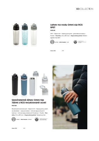 193your logo hereUzav%u00edrateln%u00e1 l%u00e1hev Omni Sip 720ml z RCS recyklovan%u00e9 oceliP437.08Recyklovan%u00e1 nerezov%u00e1 ocel %u2022 Objem 0,72 l %u2022 Nepropustn%u00fd uz%u00e1v%u011br se z%u00e1me%u010dkem %u2022 vakuov%u00e1 izolace %u2022 Uchov%u00e1 n%u00e1poj hork%u00fd a%u017e 5 hodin(y) %u2022 Uchov%u00e1 n%u00e1poj chladn%u00fd a%u017e 15 hodin(y) %u2022 Poutko %u2022 Rozm%u011bry: 27,4 x %u00d87,5 cm %u2022 Doporu%u010den%u00fd potisk: Tamponov%u00fd tisk1.92 KG %u0009 BENCHMARK: 3.59 KG Pod%u00edl RCS recyklovan%u00e1 nerezov%u00e1 ocel: 67 %. CERTIFIKOV%u00c1NO KONTROLN%u00cd UNI%u00cd (CU 1162221)Cena (K%u010d) 555 Lahev na vodu Omni sip RCS RPETP437.09rPET %u2022 Objem 0,8 l %u2022 Odoln%u00fd proti polit%u00ed %u2022 jednost%u011bnn%u00e9 izolace %u2022 Poutko %u2022 Rozm%u011bry: 27,4 x %u00d87,5 cm %u2022 Doporu%u010den%u00fd potisk: Rota%u010dn%u00ed digit%u00e1ln%u00ed tisk 360%u00b00.87 KG %u0009 BENCHMARK: 1 KG Pod%u00edl RCS rPET: 47 %. CERTIFIKOV%u00c1NO KONTROLN%u00cd UNI%u00cd (CU 1162221)Cena (K%u010d) 295