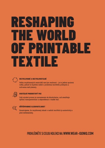 2 0RESHAPING THE WORLD OF PRINTABLE TEXTILEPROHL%u00c9DN%u011aTE SI CELOU KOLEKCI NA: WWW.WEAR-IQONIQ.COMVolba recyklovan%u00fdch materi%u00e1l%u016f nen%u00ed jen mo%u017enost%u00ed %u2013 je to jedin%u00e1 spr%u00e1vn%u00e1 volba, pokud to mysl%u00edme v%u00e1%u017en%u011b s prom%u011bnou textiln%u00edho pr%u016fmyslu a ochranou na%u0161%u00ed planety.RECYKLOVAN%u00c9 A RECYKLOVATELN%u00c9DIGIT%u00c1LN%u00cd PRODUKTOV%u00dd PASCel%u00fd v%u00fdrobn%u00ed proces je zaznamen%u00e1n do blockchainu, co%u017e umo%u017e%u0148uje %u00faplnou transparentnost a odpov%u011bdnost v ka%u017ed%u00e9 f%u00e1zi.D%u016eV%u011aRYHODN%u00c1 SLEDOVATELNOSTGarantujeme, %u017ee recyklovan%u00fd obsah v na%u0161ich textili%u00edch je autentick%u00fd a pln%u011b dohledateln%u00fd.