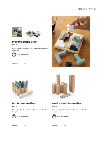 215Hern%u00ed sada Kubb ze d%u0159evaP453.51D%u0159evo %u2022 Rozm%u011bry: 32,5 x 40 x 1 cm %u2022 Doporu%u010den%u00fd potisk: Transferov%u00fd tisk3.95 KG %u0009 BENCHMARK: -Cena (K%u010d) 785 Hra Scatter ze d%u0159evaP453.52D%u0159evo %u2022 Rozm%u011bry: 32,5 x 44 x 1 cm %u2022 Doporu%u010den%u00fd potisk: Transferov%u00fd tisk3.15 KG %u0009 BENCHMARK: -Cena (K%u010d) 755 D%u0159ev%u011bn%u00e9 puzzle CreeP940.28D%u0159evo %u2022 Rozm%u011bry: 11,9 x 20 x 1,8 cm %u2022 Doporu%u010den%u00fd potisk: Tamponov%u00fd tisk0.32 KG %u0009 BENCHMARK: -Cena (K%u010d) 162