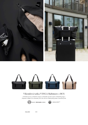 228V%u00edkendov%u00e1 ta%u0161ka VINGA Baltimore z RCSV7070301 %u010dern%u00e1 %u2022 V7070327 zelen%u00e1 %u2022 V7070325 n%u00e1mo%u0159n%u00ed mod%u0159 %u2022 V7070319 greige %u2022 Polyester %u2022 Objem 34 l %u2022 Rozm%u011bry: 45 x 40 x 36 cm %u2022 Doporu%u010den%u00fd potisk: Transferov%u00fd tisk6.84 KG %u0009 BENCHMARK: 8.08 KG Pod%u00edl RCS PU: 20 %. CERTIFIKOV%u00c1NO KONTROLN%u00cd UNI%u00cd (CU 1162221)Cena (K%u010d) 1080