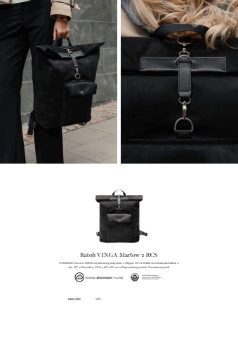 238Batoh VINGA Marlow z RCSV7050101 %u010dern%u00e1 %u2022 100% recyklovan%u00fd polyester %u2022 Objem 23 l %u2022 Odd%u00edl na notebook/tablet o vel. 15%u201d %u2022 Rozm%u011bry: 43,5 x 40 x 51 cm %u2022 Doporu%u010den%u00fd potisk: Transferov%u00fd tisk10.04 KG %u0009BENCHMARK: 11.47 KG Pod%u00edl RCS 100% recyklovan%u00fd polyester: 50 %. CERTIFIKOV%u00c1NO KONTROLN%u00cd UNI%u00cd (CU 1162221)Cena (K%u010d) 1865