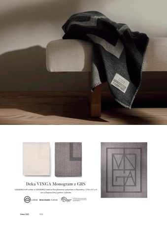 258Deka VINGA Monogram z GRSV4040603 off white %u2022 V4040602 %u0161ed%u00e1 %u2022 Recyklovan%u00fd polyester %u2022 Rozm%u011bry: 170 x 37 x 0 cm %u2022 Doporu%u010den%u00fd potisk: V%u00fd%u0161ivka4.09 KG %u0009 BENCHMARK: 9.25 KG Pod%u00edl GRS recyklovan%u00fd polyester: 97 %. CERTIFIKOV%u00c1NO KONTROLN%u00cd UNI%u00cd (CU 1162221)Cena (K%u010d) 1310