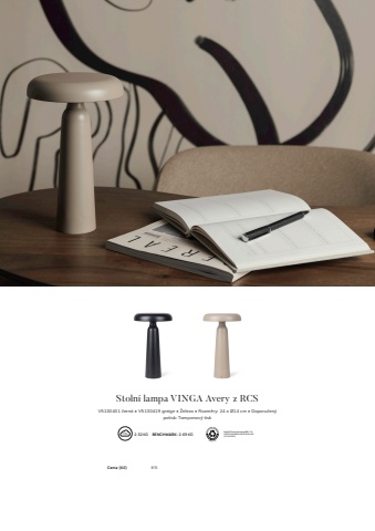 264Stoln%u00ed lampa VINGA Avery z RCSV5130401 %u010dern%u00e1 %u2022 V5130419 greige %u2022 %u017delezo %u2022 Rozm%u011bry: 24 x %u00d814 cm %u2022 Doporu%u010den%u00fd potisk: Tamponov%u00fd tisk2.32 KG %u0009 BENCHMARK: 2.69 KG Pod%u00edl RCS recyklovan%u00e1 ABS: 7 %. CERTIFIKOV%u00c1NO KONTROLN%u00cd UNI%u00cd (CU 1162221)Cena (K%u010d) 815
