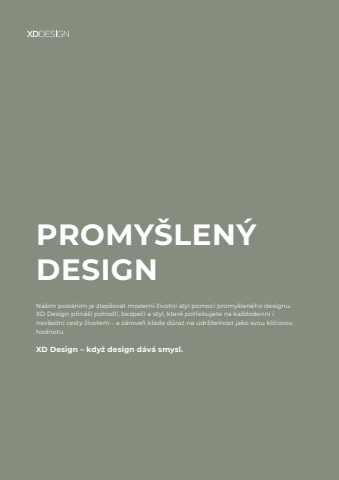 4 2PROMY%u0160LEN%u00dd DESIGNNa%u0161%u00edm posl%u00e1n%u00edm je zlep%u0161ovat modern%u00ed %u017eivotn%u00ed styl pomoc%u00ed promy%u0161len%u00e9ho designu.XD Design p%u0159in%u00e1%u0161%u00ed pohodl%u00ed, bezpe%u010d%u00ed a styl, kter%u00e9 pot%u0159ebujete na ka%u017edodenn%u00ed i nev%u0161edn%u00ed cesty %u017eivotem %u2013 a z%u00e1rove%u0148 klade d%u016fraz na udr%u017eitelnost jako svou kl%u00ed%u010dovou hodnotu.XD Design %u2013 kdy%u017e design d%u00e1v%u00e1 smysl.