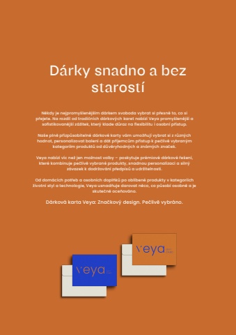 77N%u011bkdy je nejpromy%u0161len%u011bj%u0161%u00edm d%u00e1rkem svoboda vybrat si p%u0159esn%u011b to, co si p%u0159ejete. Na rozd%u00edl od tradi%u010dn%u00edch d%u00e1rkov%u00fdch karet nab%u00edz%u00ed Veya promy%u0161len%u011bj%u0161%u00ed a sofistikovan%u011bj%u0161%u00ed z%u00e1%u017eitek, kter%u00fd klade d%u016fraz na flexibilitu i osobn%u00ed p%u0159%u00edstup.Na%u0161e pln%u011b p%u0159izp%u016fsobiteln%u00e9 d%u00e1rkov%u00e9 karty v%u00e1m umo%u017e%u0148uj%u00ed vybrat si z r%u016fzn%u00fdch hodnot, personalizovat balen%u00ed a d%u00e1t p%u0159%u00edjemc%u016fm p%u0159%u00edstup k pe%u010dliv%u011b vybran%u00fdm kategori%u00edm produkt%u016f od d%u016fv%u011bryhodn%u00fdch a zn%u00e1m%u00fdch zna%u010dek.Veya nab%u00edz%u00ed v%u00edc ne%u017e jen mo%u017enost volby %u2013 poskytuje pr%u00e9miov%u00e9 d%u00e1rkov%u00e9 %u0159e%u0161en%u00ed, kter%u00e9 kombinuje pe%u010dliv%u011b vybran%u00e9 produkty, snadnou personalizaci a siln%u00fd z%u00e1vazek k dodr%u017eov%u00e1n%u00ed p%u0159edpis%u016f a udr%u017eitelnosti.Od dom%u00e1c%u00edch pot%u0159eb a osobn%u00edch dopl%u0148k%u016f po obl%u00edben%u00e9 produkty v kategori%u00edch %u017eivotn%u00ed styl a technologie, Veya usnad%u0148uje darovat n%u011bco, co p%u016fsob%u00ed osobn%u011b a je skute%u010dn%u011b oce%u0148ov%u00e1no.D%u00e1rkov%u00e1 karta Veya: Zna%u010dkov%u00fd design. Pe%u010dliv%u011b vybr%u00e1no.D%u00e1rky snadno a bez starost%u00ed