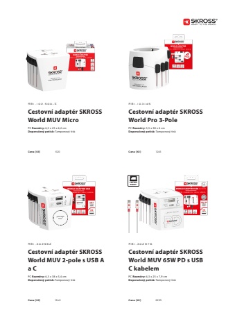 7 7LAPTOPREADYyour logo hereRB1.102.500-ECestovn%u00ed adapt%u00e9r SKROSS World MUV MicroPC Rozm%u011bry: 6,5 x 25 x 6,2 cm Doporu%u010den%u00fd potisk: Tamponov%u00fd tiskCena (K%u010d) 620 RB1.103145Cestovn%u00ed adapt%u00e9r SKROSS World Pro 3-PolePC Rozm%u011bry: 5,5 x 38 x 6 cm Doporu%u010den%u00fd potisk: Tamponov%u00fd tiskCena (K%u010d) 1245 RB1.302962Cestovn%u00ed adapt%u00e9r SKROSS World MUV 2-pole s USB A a CPC Rozm%u011bry: 6,3 x 38 x 5,4 cm Doporu%u010den%u00fd potisk: Tamponov%u00fd tiskCena (K%u010d) 1640 RB1.302976Cestovn%u00ed adapt%u00e9r SKROSS World MUV 65W PD s USB C kabelemPC Rozm%u011bry: 6,3 x 25 x 7,9 cm Doporu%u010den%u00fd potisk: Tamponov%u00fd tiskCena (K%u010d) 2295