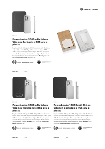 8 3your logo here P322.81Powerbanka 3000mAh Urban Vitamin Burbank z RCS alu a plastuRecyklovan%u00e1 Hlin%u00edk %u2022 Celkov%u00fd v%u00fdkon 10W %u2022 Nabije telefon a%u017e 1x %u2022 Bezdr%u00e1tov%u00e9 nab%u00edjen%u00ed %u2022 V%u00fdkon dra%u017e%u00e9 8W %u2022 Magnetick%u00e9 bezdr%u00e1tov%u00e9 nab%u00edjen%u00ed %u2022 USB C v%u00fdstup %u2022 USB-C nab%u00edjec%u00ed konektor(y) %u2022 Indik%u00e1tor nab%u00edjen%u00ed %u2022 Schv%u00e1leno jako p%u0159%u00edru%u010dn%u00ed zavazadlo %u2022 Nab%u00edjen%u00ed jin%u00fdch za%u0159%u00edzen%u00ed p%u0159i vlastn%u00edm nab%u00edjen%u00ed %u2022 Rychl%u00e9 nab%u00edjen%u00ed %u2022Lze nab%u00edjet bezdr%u00e1tov%u011b %u2022 Sou%u010dasn%u011b na%u010dte 2 za%u0159%u00edzen%u00ed %u2022 Rozm%u011bry: 10,2 x 21 x0,6 cm Doporu%u010den%u00fd potisk: Tamponov%u00fd tisk1.85 KG %u0009 BENCHMARK: 1.93 KG Pod%u00edl RCS recyklovan%u00e1 hlin%u00edk: 15 %. CERTIFIKOV%u00c1NO KONTROLN%u00cd UNI%u00cd (CU 1162221)Cena (K%u010d) 1080 P322.82Powerbanka 5000mAh Urban Vitamin Richmond z RCS alu a plastuRecyklovan%u00e1 Hlin%u00edk %u2022 Celkov%u00fd v%u00fdkon 20W %u2022 Nabije telefon a%u017e 1x %u2022 Bezdr%u00e1tov%u00e9 nab%u00edjen%u00ed %u2022 V%u00fdkon dra%u017e%u00e9 15W %u2022 Magnetick%u00e9 bezdr%u00e1tov%u00e9 nab%u00edjen%u00ed %u2022 USB C v%u00fdstup %u2022 USB-C nab%u00edjec%u00ed konektor(y) %u2022 Indik%u00e1tor nab%u00edjen%u00ed %u2022 Schv%u00e1leno jako p%u0159%u00edru%u010dn%u00edzavazadlo %u2022 Nab%u00edjen%u00ed jin%u00fdch za%u0159%u00edzen%u00ed p%u0159i vlastn%u00edm nab%u00edjen%u00ed %u2022 Rychl%u00e9 nab%u00edjen%u00ed %u2022 Sou%u010dasn%u011b na%u010dte 2 za%u0159%u00edzen%u00ed %u2022 Rozm%u011bry: 10,2 x 21 x 0,9 cm Doporu%u010den%u00fd potisk: Tamponov%u00fd tisk2.63 KG %u0009 BENCHMARK: 2.72 KG Pod%u00edl RCS recyklovan%u00e1 hlin%u00edk: 15 %. CERTIFIKOV%u00c1NO KONTROLN%u00cd UNI%u00cd (CU 1162221)Cena (K%u010d) 1310 P322.84Powerbanka 10000mAh Urban Vitamin Compton z RCS alu a plastuRecyklovan%u00e1 Hlin%u00edk %u2022 Celkov%u00fd v%u00fdkon 20W %u2022 Nabije telefon a%u017e 2x %u2022 Bezdr%u00e1tov%u00e9 nab%u00edjen%u00ed %u2022 V%u00fdkon dra%u017e%u00e9 20W %u2022 Magnetick%u00e9 bezdr%u00e1tov%u00e9 nab%u00edjen%u00ed %u2022 USB C v%u00fdstup %u2022 USB-C nab%u00edjec%u00ed konektor(y) %u2022 Indik%u00e1tor nab%u00edjen%u00ed %u2022 Schv%u00e1leno jako p%u0159%u00edru%u010dn%u00ed zavazadlo %u2022 Nab%u00edjen%u00ed jin%u00fdch za%u0159%u00edzen%u00ed p%u0159i vlastn%u00edm nab%u00edjen%u00ed %u2022 Rychl%u00e9 nab%u00edjen%u00ed %u2022Sou%u010dasn%u011b na%u010dte 2 za%u0159%u00edzen%u00ed %u2022 Nab%u00edjec%u00ed kapacita pro tablety %u2022 Rozm%u011bry: 10,2 x21,1 x 1,4 cm Doporu%u010den%u00fd potisk: Tamponov%u00fd tisk4.13 KG %u0009 BENCHMARK: 4.25 KG Pod%u00edl RCS recyklovan%u00e1 hlin%u00edk: 11 %. CERTIFIKOV%u00c1NO KONTROLN%u00cd UNI%u00cd (CU 1162221)Cena (K%u010d) 1640
