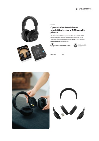 9 5P331.53Opraviteln%u00e1 bezdr%u00e1tov%u00e1 sluch%u00e1tka Irvine z RCS recykl. plasturPC %u2022 Doba nab%u00edjen%u00ed 2H %u2022 Doba p%u0159ehr%u00e1v%u00e1n%u00ed 40H %u2022 Verze BT 5.3 %u2022 USB-C nab%u00edjec%u00ed konektor(y) %u2022 Mikrofon %u2022 P%u0159%u00edjem hovor%u016f %u2022 Dosah 10M %u2022 ANC a%u017e -32dB %u2022 ENC %u2022 %u00darove%u0148 vod%u011bodolnosti IPX 4 %u2022 Rozm%u011bry: 19,6 x 38 x 8 cm Doporu%u010den%u00fd potisk: Tamponov%u00fd tisk3.28 KG %u0009 BENCHMARK: 3.58 KG Pod%u00edl RCS recyklovan%u00fd PC: 32 %. CERTIFIKOV%u00c1NO KONTROLN%u00cd UNI%u00cd (CU 1162221)Cena (K%u010d) 3250