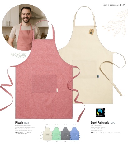 GIFT & PREMIUMS I 105Pissek 68310203117 04 1965 %u00d7 90 cm 100 / 10 Print Code: F(4), N(8), PZowi Fairtrade 127065 %u00d7 90 cm 100 / 10 Print Code: F(4), N(8), PApron. Cotton 180 g/ m2.Sch%u00fcrze. Baumwolle 180 g/ m2.Tablier. Coton 180 g/ m2.Schort. Katoen 180 g/ m2.Apron. Recycled Cotton 140 g/ m2.Sch%u00fcrze. Reclycling Baumwolle 140 g/ m2.Tablier. Coton Recycl%u00e9 140 g/ m2.Schort. Gerecycled Katoen 140 g/ m2.