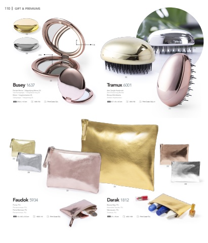1X2X090922222323090922222323110 I GIFT & PREMIUMSBusey 1637%u00d8 6.4 %u00d7 1.5 cm 300 / 50 Print Code: C(1)Tramux 60016.7 %u00d7 9 %u00d7 4.5 cm 200 / 50 Print Code: D(1), L1Faudok 593412 %u00d7 8.5 %u00d7 0.5 cm 1000 / 10 Print Code: E(1)Darak 181221 %u00d7 15 cm 400 / 100 Print Code: F(1)Beauty Bag. PU.Kosmetik Tasche. PU.N%u00e9cessaire. PU.Toilettas. PU.Purse. PU.Portemonnaie. PU.Porte Monnaie. PU.Portemonnee. PU.Anti-Tangle Hairbrush.Anti-Entwirung B%u00fcrste.Brosse D%u00e9m%u00ealante.Antiklit Haarborstel.Pocket Mirror. 1 Magnifying Mirror 2X.Taschenspiegel. 1 Vergr%u00f6sserung 2X.Miroir. 1 Augmentation 2X.Zakspiegel. 1 Vergroting 2X.
