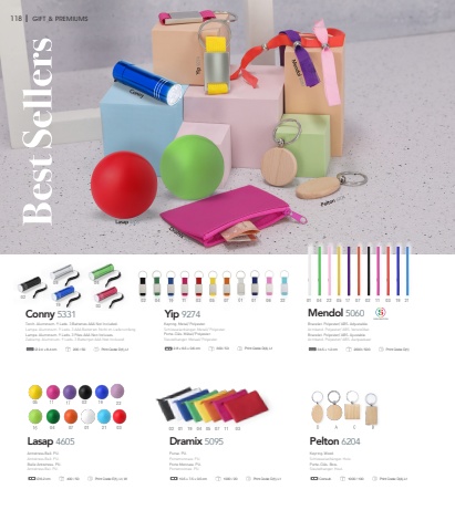 0405 11 1907 01 21 0302 2201 04 22 17 07 02 11 03 19 21118 I GIFT & PREMIUMSMendol 5060 SUBLIMATION34.5 %u00d7 1.2 cm 2000 / 500 Print Code: D(1)Lasap 4605%u00d8 6.2 cm 400 / 50 Print Code: E(1), L1, WDramix 509502 010219 04 05 07 11 0310.5 %u00d7 7.5 %u00d7 0.5 cm 1000 / 20 Print Code: D(1), L1Conny 53310309 0419%u00d8 2.4 %u00d7 8.4 cm 200 / 50 Print Code: D(1), L1Pelton 6204Consult. 1000 / 100 Print Code: D(4), L1Yip 927402 04 11 03 05 07 01 06 222.8 %u00d7 6.5 %u00d7 0.6 cm 300 / 50 Print Code: D(4), L105Keyring. Metal/ Polyester.Schl%u00fcsselanh%u00e4nger. Metall/ Polyester.Porte-Cl%u00e9s. M%u00e9tal/ Polyester.Sleutelhanger. Metaal/ Polyester.Keyring. Wood.Schl%u00fcsselanh%u00e4nger. Holz.Porte-Cl%u00e9s. Bois.Sleutelhanger. Hout.Torch. Aluminium. 9 Leds. 3 Batteries AAA Not Included.Lampe. Aluminium. 9 Leds. 3 AAA Batterien Nicht im Lieferumfang.Lampe. Aluminium. 9 Leds. 3 Piles AAA Non Incluses.Zaklamp. Aluminium. 9 Leds. 3 Batterijen AAA Niet Inclusief.Purse. PU.Portemonnaie. PU.Porte Monnaie. PU.Portemonnee. PU.Antistress Ball. PU.Antistress Ball. PU.Balle Antistress. PU.Antistress Bal. PU.Bracelet. Polyester/ ABS. Adjustable.Armband. Polyester/ ABS. Verstellbar.Bracelet. Polyester/ ABS. Ajustable.Armband. Polyester/ ABS. Aanpasbaar.