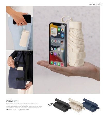 RAIN & COLD I 121Ottis 2187902 13 06%u00d8 90 cm 30 Print Code: F(1), G(1), N(8)Foldable Umbrella. Polyester 190T. Fibreglass Ribs. 20%u201d. Windproof. Polyester Pouch.Faltbare Regenschirm. Polyester 190T. Fiberglass Rippen. 20%u201d. Antiwindsystem. Polyester Etui.Parapluie Pliable. Polyester 190T. Tiges Fibre de Verre. 20%u201d. Syst%u00e8me Anti-Vent. %u00c9tui Polyester.Opvouwbare Paraplu. Polyester 190T. Glasvezel Ribben. 20%u201d. Windbestendig. Polyester Zakje.