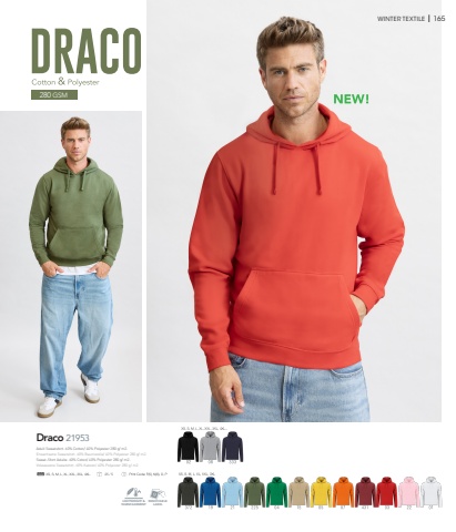 280 GSMWINTER TEXTILE I 165Draco 21953LIGHTWEIGHT &WARM GARMENTREMOVABLELABELAdult Sweatshirt. 60% Cotton/ 40% Polyester 280 g/ m2.Erwachsene Sweatshirt. 60% Baumwolle/ 40% Polyester 280 g/ m2.Sweat-Shirt Adulte. 60% Coton/ 40% Polyester 280 g/ m2.Volwassene Sweatshirt. 60% Katoen/ 40% Polyester 280 g/ m2.