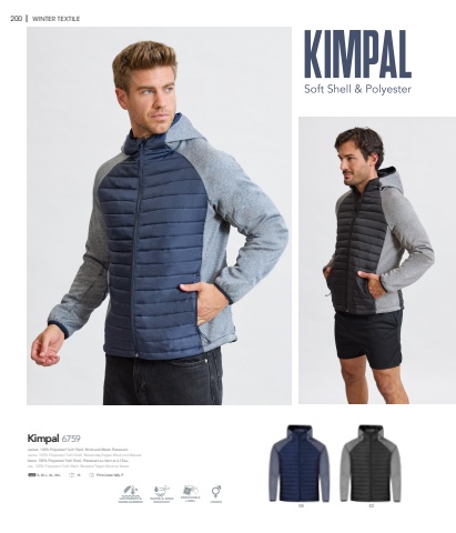 200 I WINTER TEXTILEKimpal 675906 02LIGHTWEIGHT &WARM GARMENTWATER & WINDRESISTANTREMOVABLELABEL UNISEXS, M, L, XL, XXL 15 Print Code: N(8), PJacket. 100% Polyester/ Soft Shell. Wind and Water Resistant.Jacke. 100% Polyester/ Soft Shell. Best%u00e4ndig Gegen Wind und Wasser.Veste. 100% Polyester/ Soft Shell. R%u00e9sistant au Vent et %u00e0 l%u2019Eau.Jas. 100% Polyester/ Soft Shell. Bestand Tegen Wind en Water.
