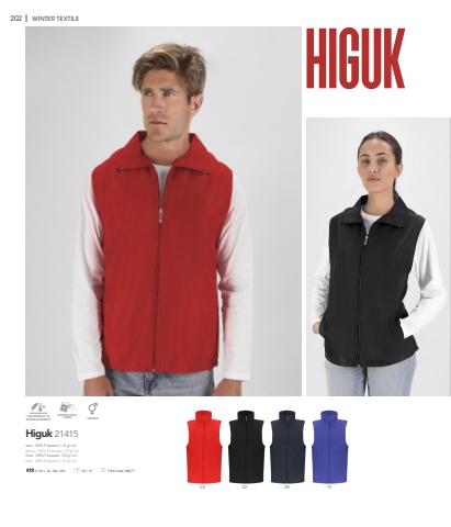 202 I WINTER TEXTILEHiguk 21415LIGHTWEIGHT &WARM GARMENTREMOVABLELABEL UNISEXS, M, L, XL, XXL, 3XL 50 / 10 Print Code: N(8), P03 02 06 19Vest. 100% Polyester 120 g/ m2.Weste. 100% Polyester 120 g/ m2.Gilet. 100% Polyester 120 g/ m2.Vest. 100% Polyester 120 g/ m2.