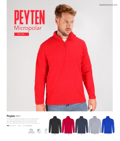 155 GSMWINTER TEXTILE I 213Peyten 484102 03 06 08LIGHTWEIGHT &WARM GARMENTREMOVABLELABEL UNISEXS, M, L, XL, XXL 25 Print Code: N(8), PPolar Fleece. 100% Polyester Micropolar 155 g/ m2. Anti-Pilling Treatment.Vlies. 100% Polyester Mikropolare 155 g/ m2. Anti-Pilling Behandlung.Veste. 100% Polyester Micropolaire 155 g/ m2. Traitement Anti-Pilling.Polar Fleece. 100% Polyester Micropolar 155 g/m2. Anti-Pilling Behandeling.