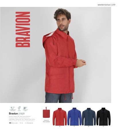 POUCH INCLUDEDWINTER TEXTILE I 21903 06 02Bravion 21829S, M, L, XL, XXL 50 Print Code: G(1)REMOVABLELABELWATER & WINDRESISTANT UNISEXRaincoat. Polyester 230T. Silver Coating Treatment.Regenjacke. Polyester 230T. Silberbeschichtung.Imperm%u00e9able. Polyester 230T. Avec Traitement Silver Coating.Regenjas. Polyester 230T. Met Zilveren Coating Behandeling.
